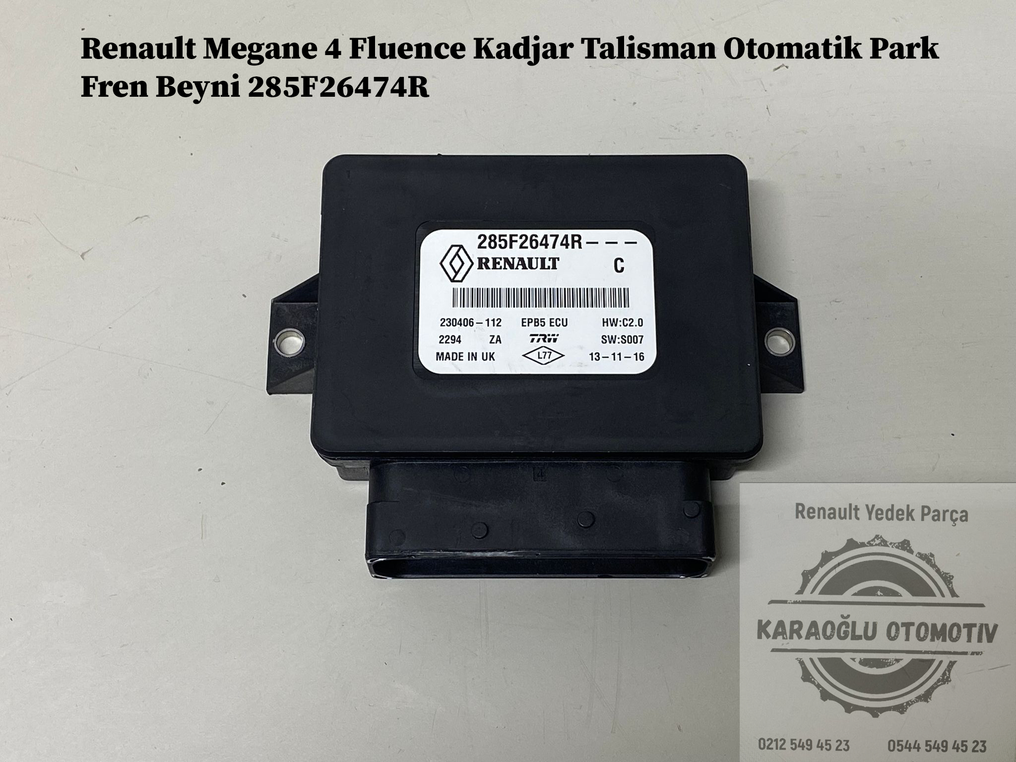 Renault Megane 4 Fluence Kadjar Talisman Otomatik Park Fren Beyni 285F26474R